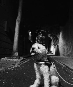 While she’s friendly there’s still no petting allowed. Stella’s got a propensity toward leakage when greeted by strangers. She’s perhaps too friendly. I picture her opening the front door then leading a burglar to the fancy china and flatware.