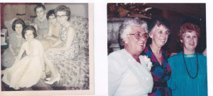 The two older were two years apart. Eight year gap and the two young ones show up separated by two years as well. My mother is the first on the left sitting with the boofiest bouffant. In a close second place is Arlene, but she coulda won with just one more can of AquaNet. But Janet won. In the right picture, she’s on the far right in blue. Ruth in the middle. Norma on the left. Not a bad looking trio, right? They spent a lot of time together raising kids and living life. They were fun, never at a loss for words, and always up for a game of Can You Top This? Oh yeah, politely competitive. Explains a persnickety woman’s driven nature. Scratch competitive and go with driven.